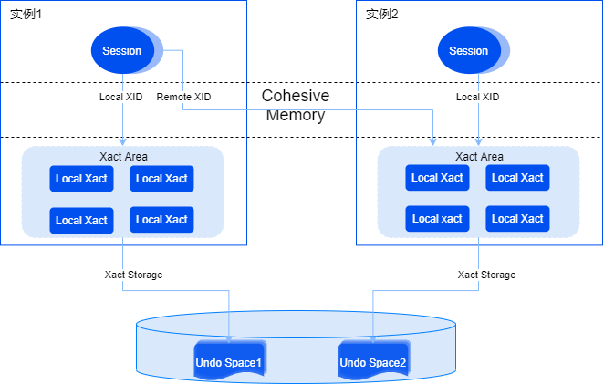 崖山共享集群下的事务引擎采用完全分布式存储的事务架构,每个实例具备独立的undo表空间、对外提供独立的事务管理能力。各实例下的事务ID天然具备唯一性,不需要集中式的事务处理。