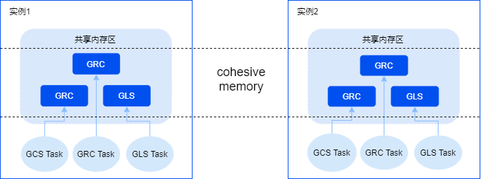 为了实现高效的多实例并发读写访问,YCK使用Cohesive Memory来聚合多实例的数据资源和非数据类资源的访问。其中:GRC( Global Resource Catalog )负责全局资源管理,GCS( Global Cache Service )负责全局数据页管理,GLS( Global Lock Service )负责全局锁管理。