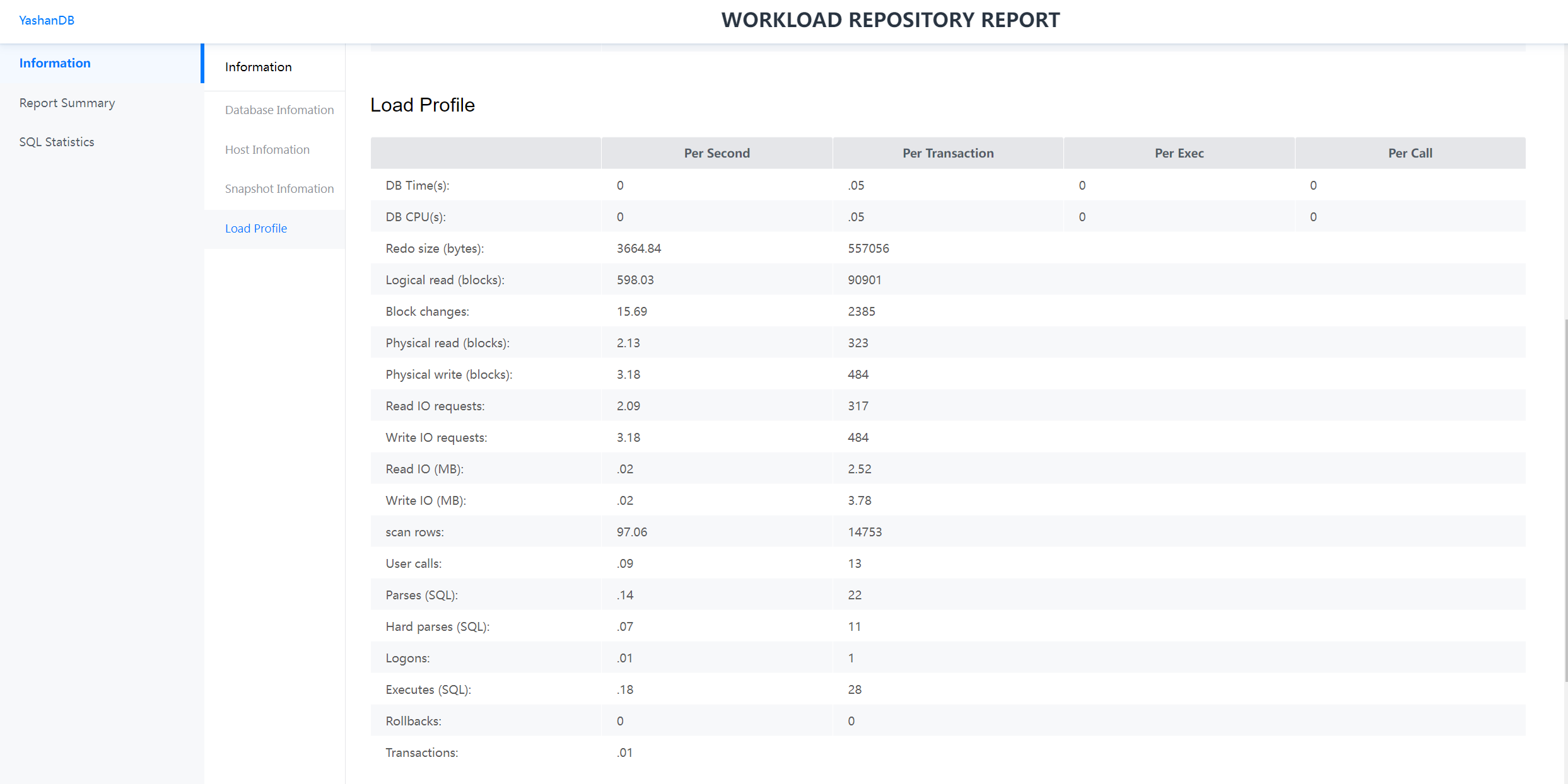 以下为YashanDB所生成性能报告以网页形式展现的示例: