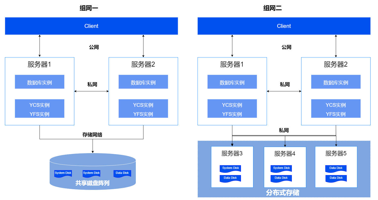 - 公网:主要用于外部业务访问YashanDB、DBA进行数据库管理以及数据库工具进行数据库命令调用等。