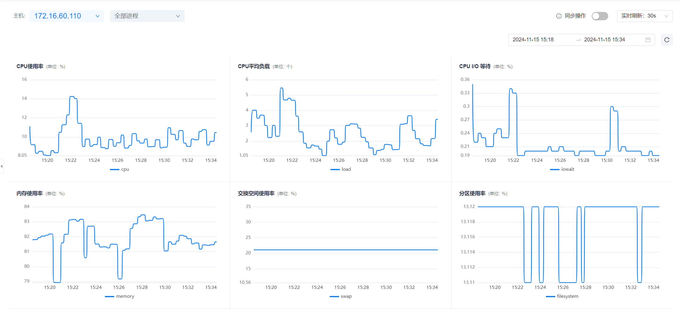 监控图支持框选时间段、单图表放大、单图表刷新、实时刷新、同步等操作。