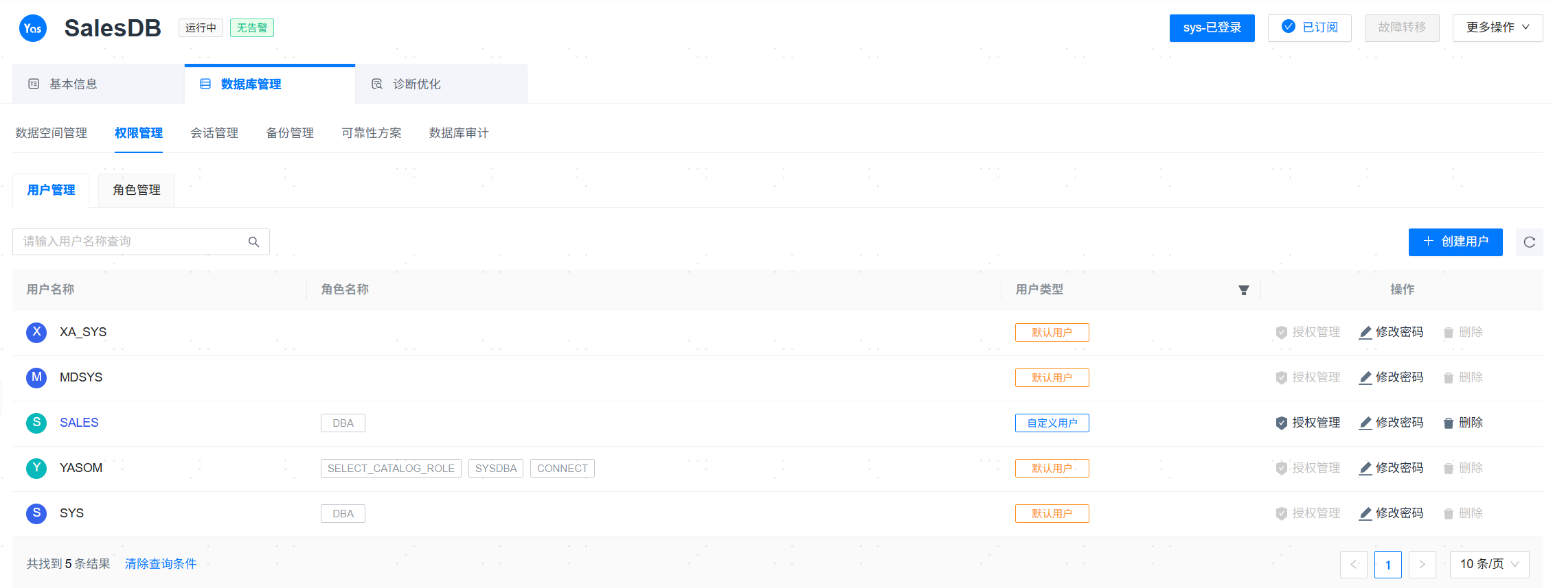 网页路径:【YashanDB】>【YashanDB列表】>【数据库名称】>【数据库管理】>【权限管理】
