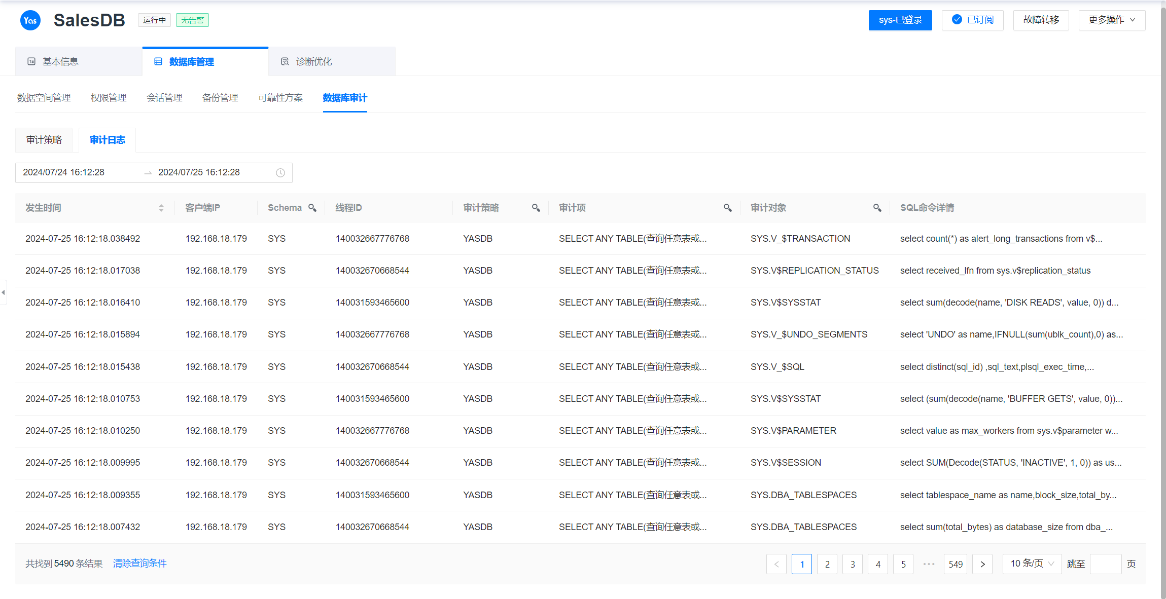 网页路径:【YashanDB】>【YashanDB列表】>【数据库名称】>【数据库管理】>【数据库审计】