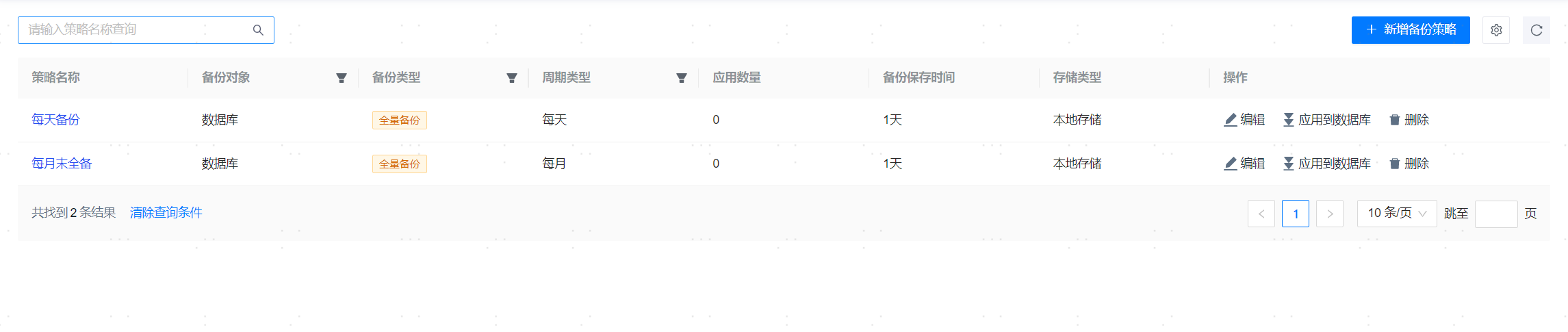 将备份策略应用到某个具体的数据库,应用成功后会在作业管理里边添加一条备份的周期性作业,该数据库也会按照策略进行周期性备份。