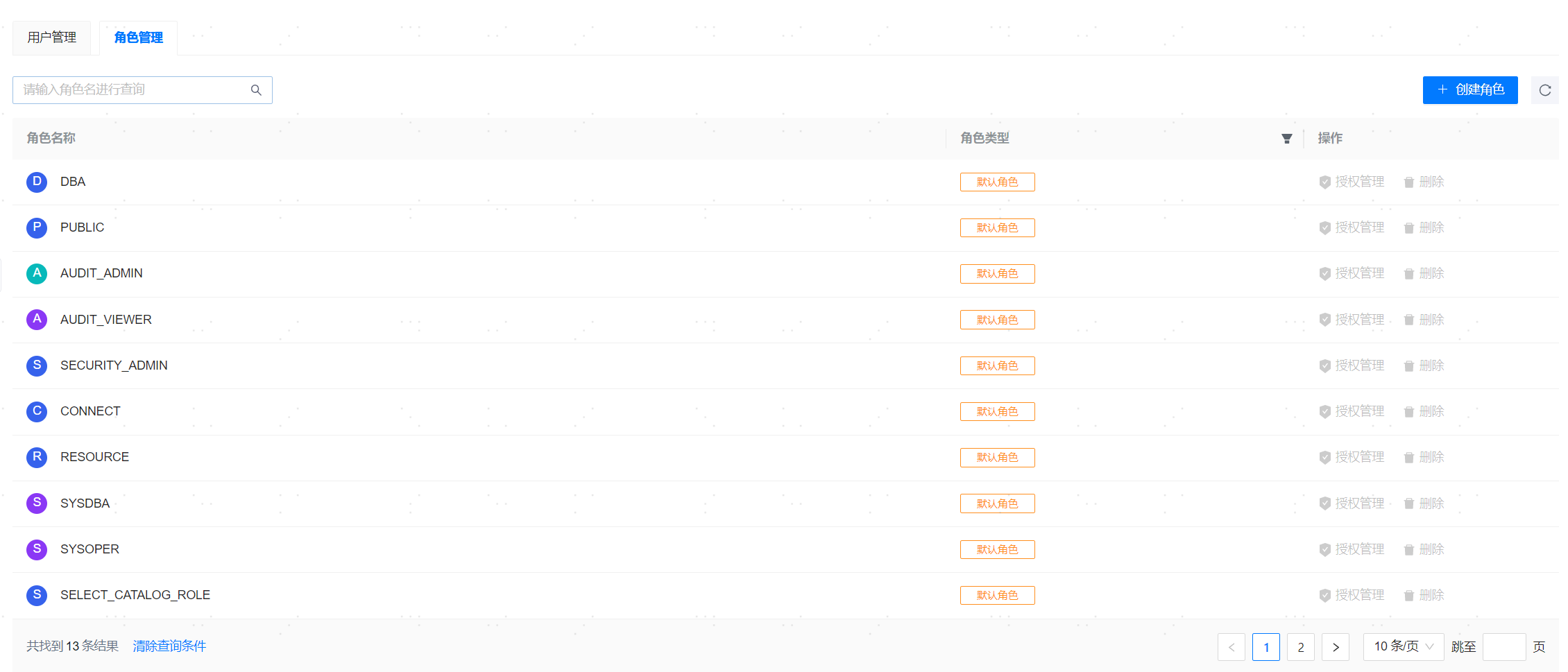角色管理您可进行数据库角色创建、授权管理等操作。