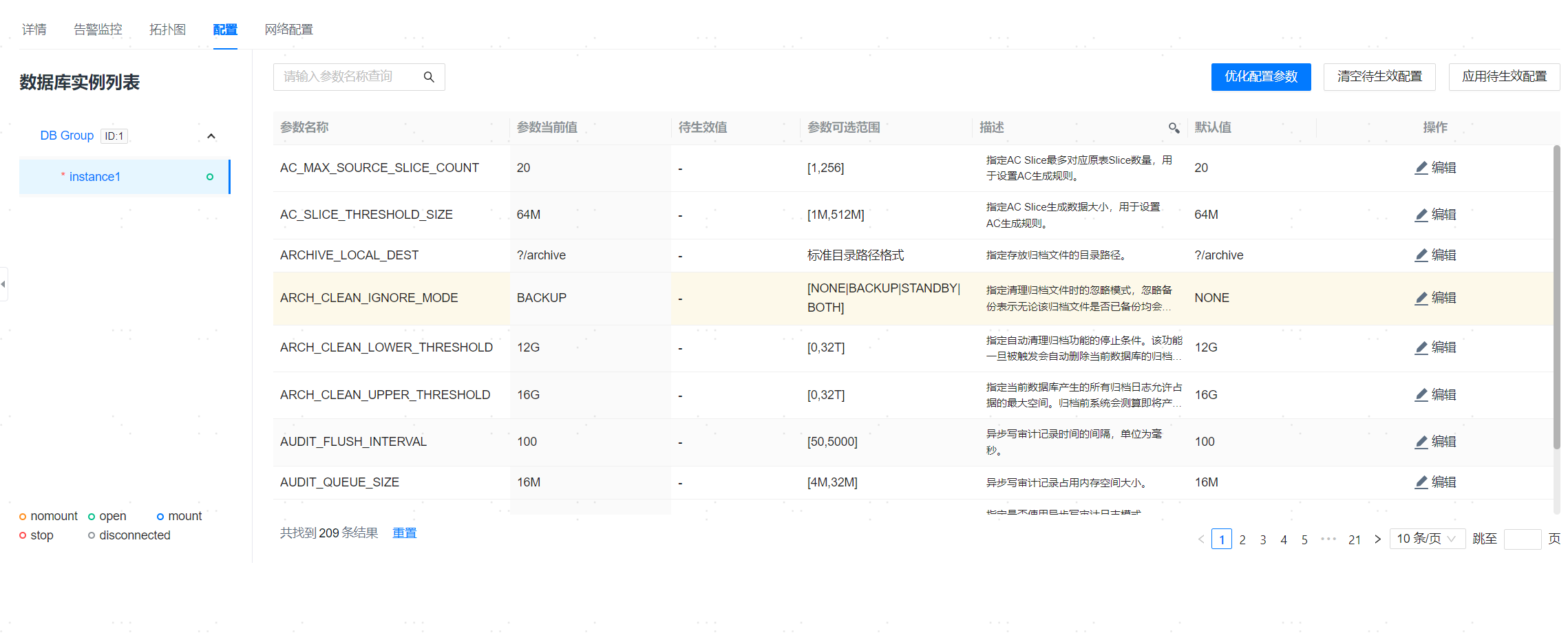 单击【应用待生效配置】可以将所有未生效的配置项一起应用到数据库。