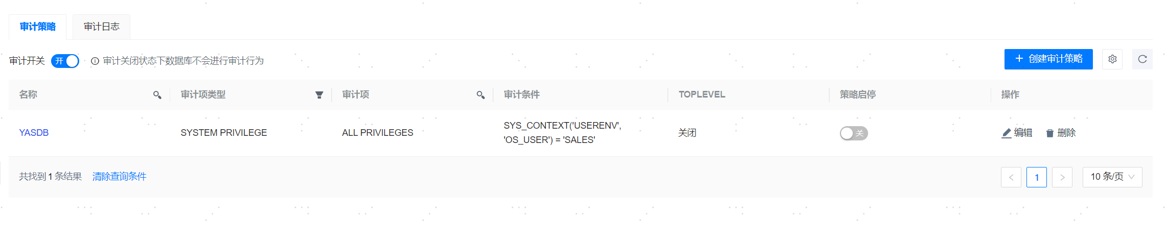 网页路径:【YashanDB】>【YashanDB列表】>【数据库名称】>【数据库管理】>【数据库审计】