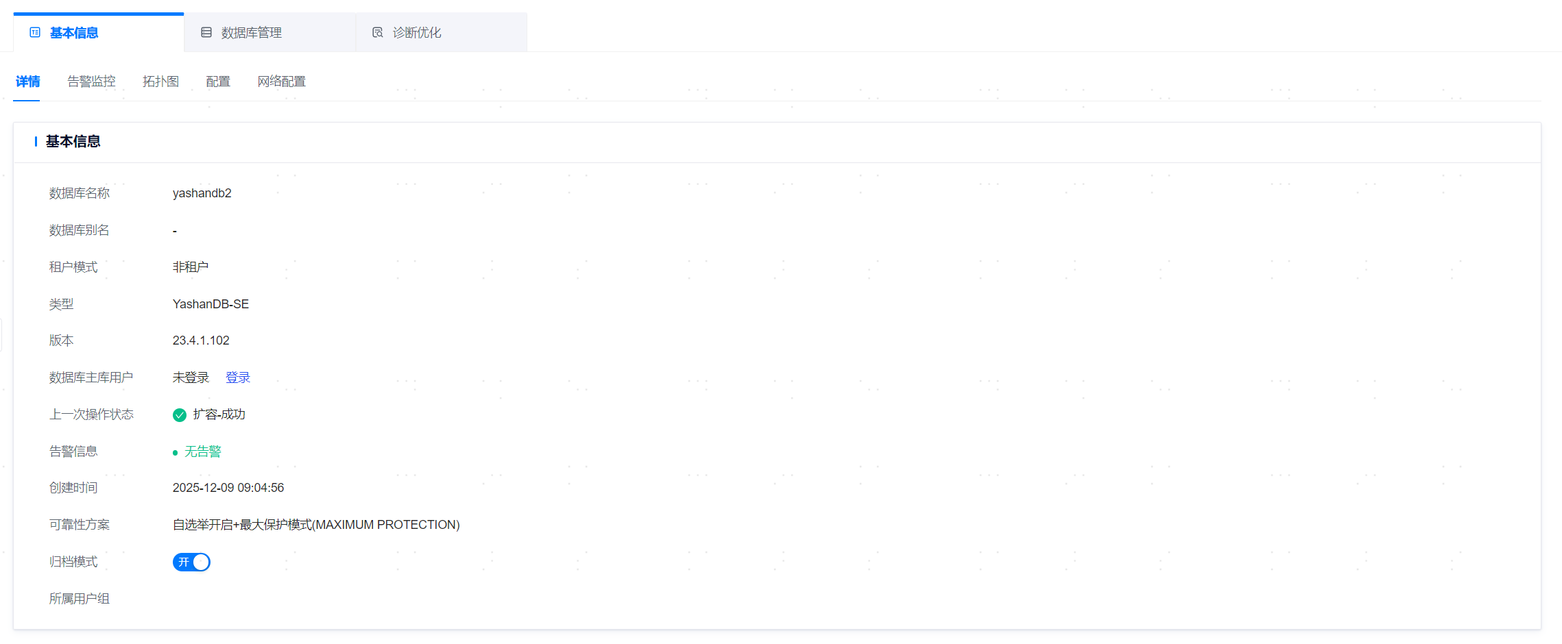 网页路径:【YashanDB】>【YashanDB列表】>【数据库名称】>【基本信息】>【详情】