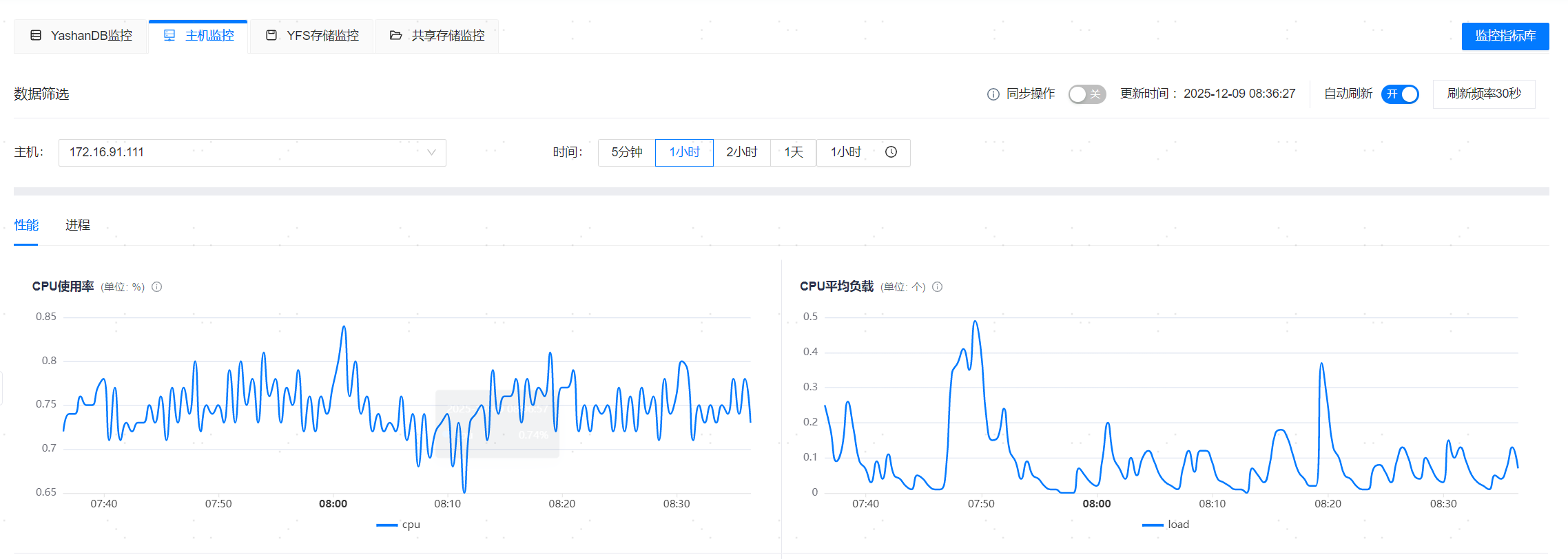 YFS监控支持框选时间段、单图表放大、单图表刷新、自动刷新、同步等操作。