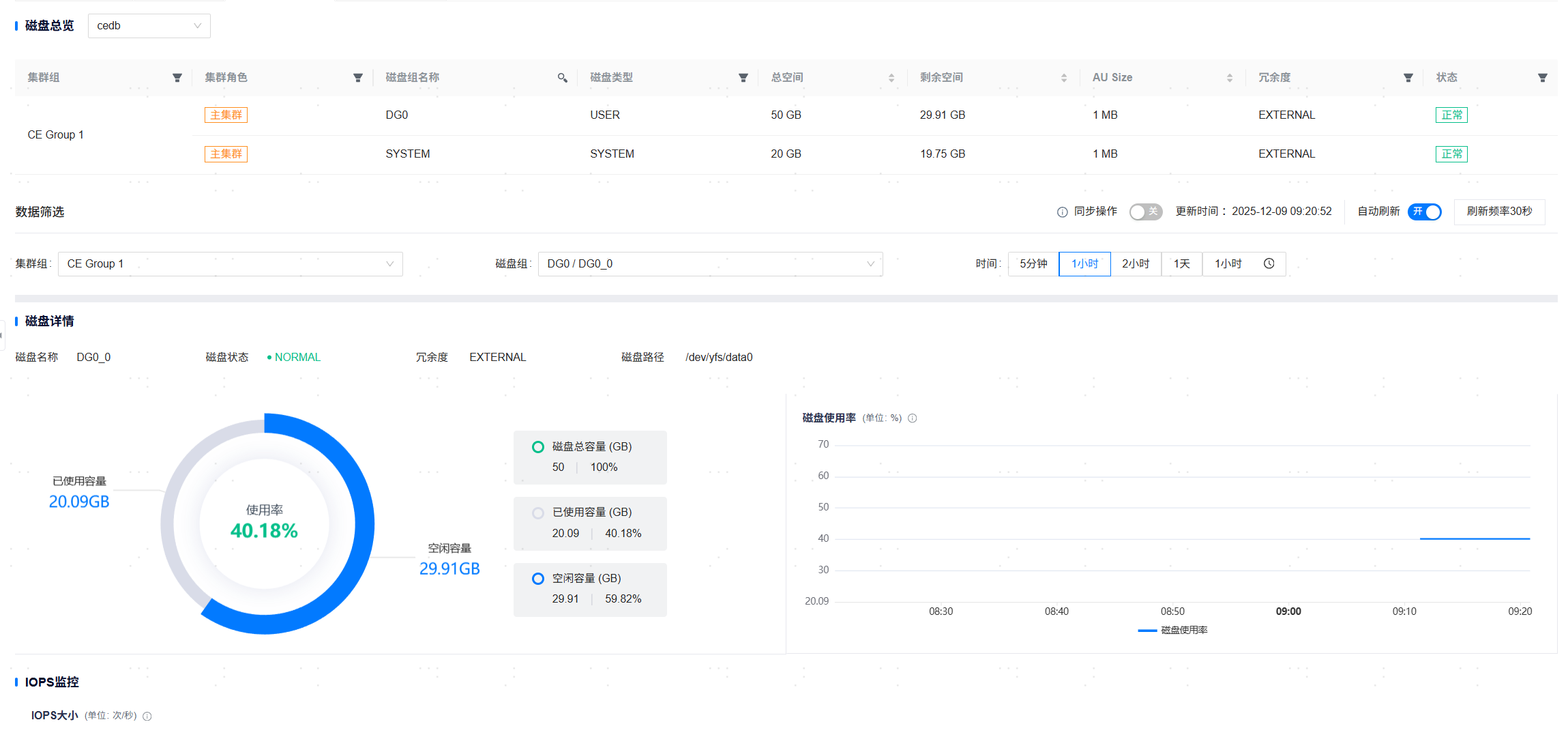 - 磁盘IOPS(全部:显示所有磁盘的IOPS曲线。累加和:显示所有磁盘的IOPS之和。)