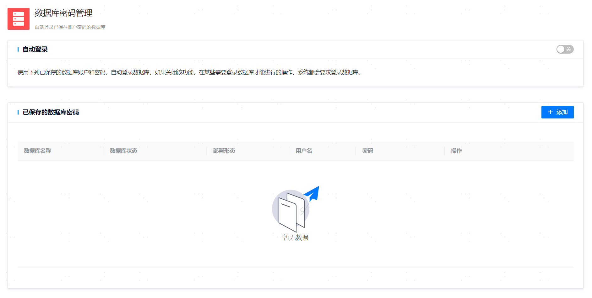 平台支持保存数据库用户名和密码、并支持基于已保存的密码配置自动登录数据库。