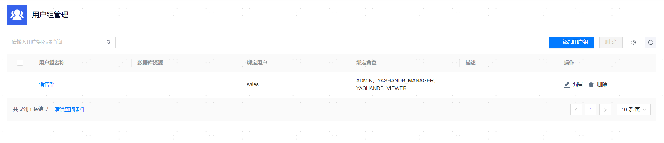 未绑定用户的用户组可删除,已绑定用户的用户组无法删除。