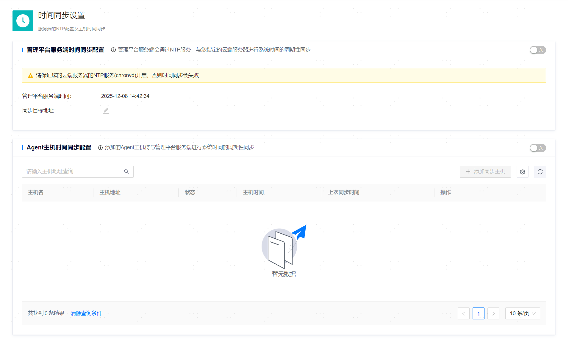 管理平台服务端可以通过NTP服务与指定的云端服务器进行系统时间同步。
