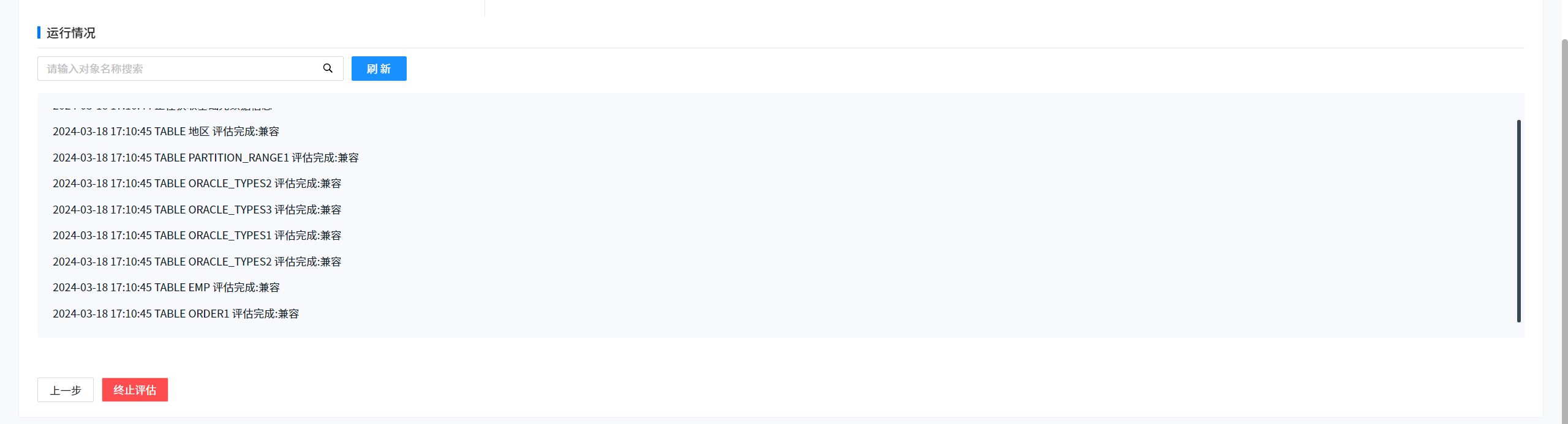 展示当前评估过程中的任务日志进度信息,可以进行搜索、滑动查看历史等操作。
