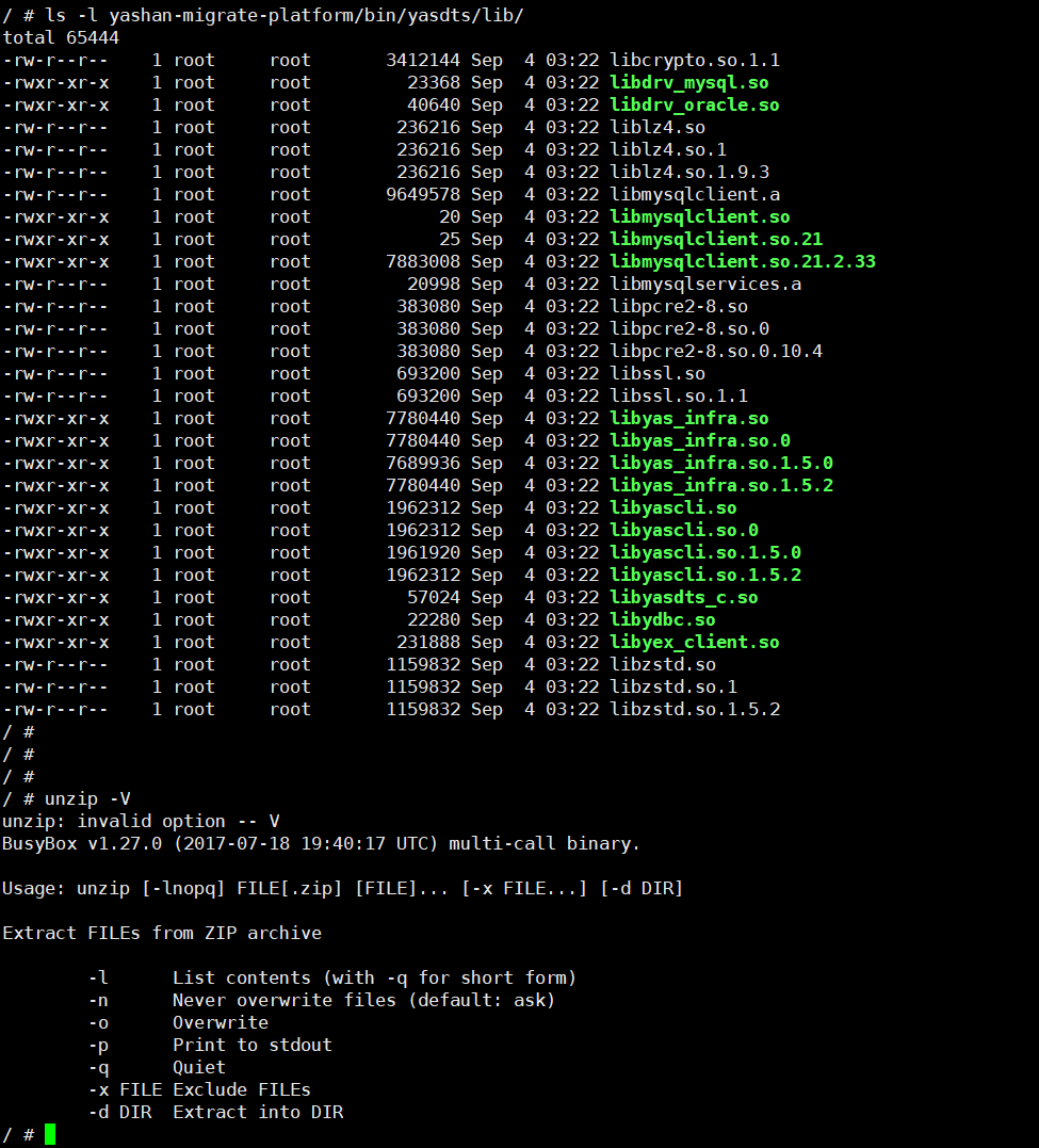 已知的问题是机器上unzip指令由BusyBox工具箱提供,在v.1.27.0版本中的unzip解压有问题,软链接失效。