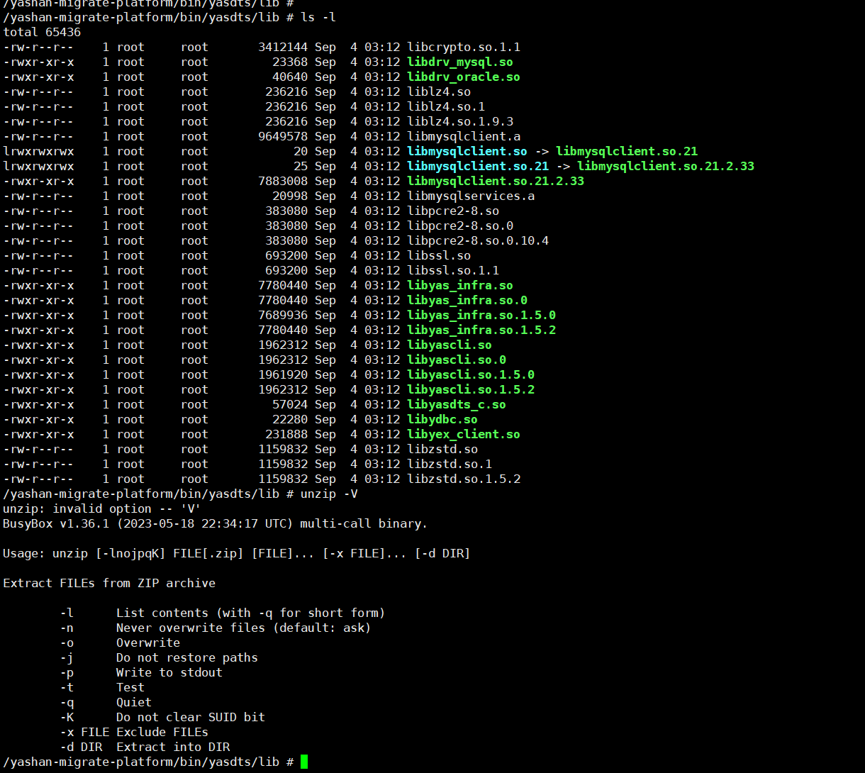 出现该问题可能的原因是安装包解压出错,数据迁移使用的依赖文件软链接失效,请排查环境机器使用的unzip工具版本。